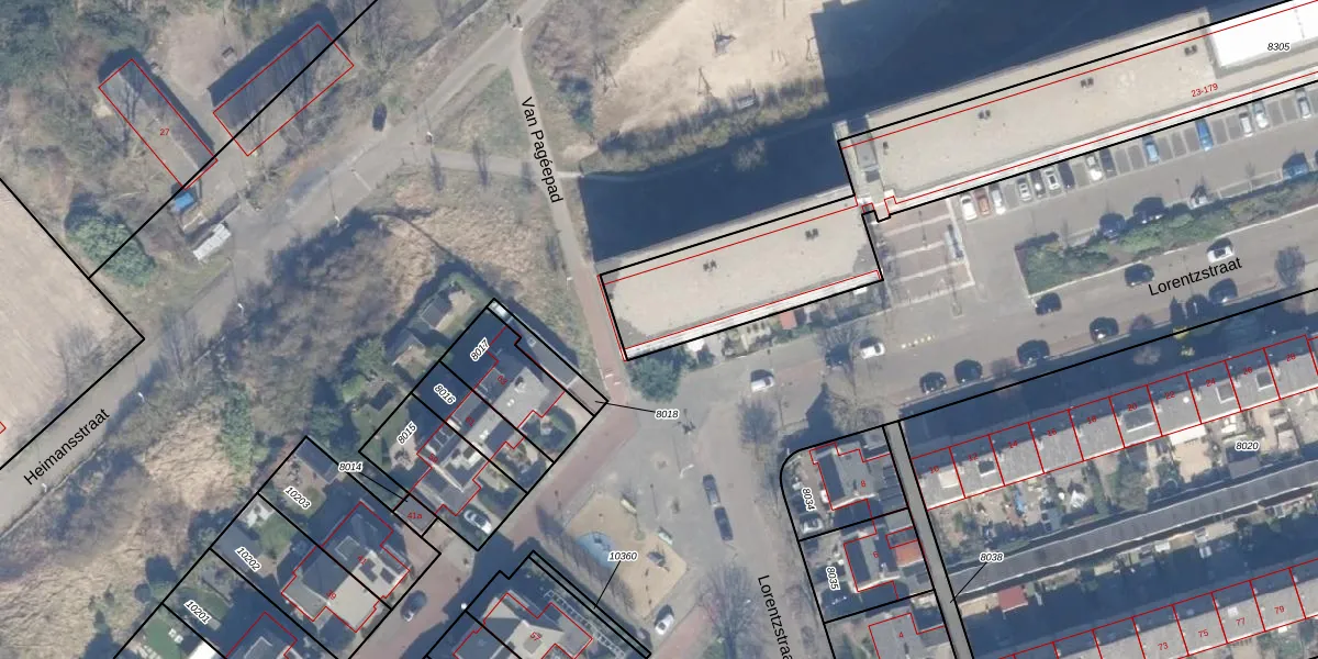 Het perceel waarop Lorentzstraat 33 staat heeft een oppervlakte van 2550 m². Dit is een zeer groot perceel. De perceeloppervlakte wordt geregistreerd door het Kadaster. Gedetailleerde informatie over de maten van dit perceel kunt u vinden in het rapport Kadastrale kaart met maatvoering van Lorentzstraat 33.
