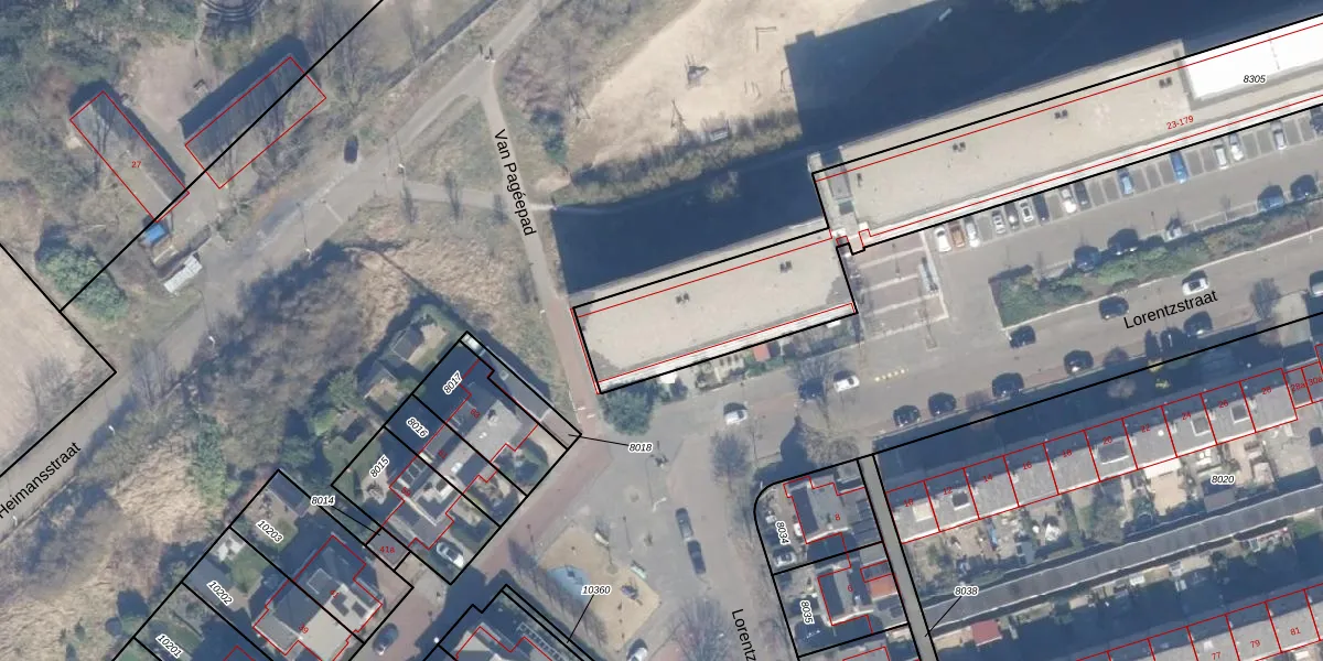 Het perceel waarop Lorentzstraat 37 staat heeft een oppervlakte van 2550 m². Dit is een zeer groot perceel. De perceeloppervlakte wordt geregistreerd door het Kadaster. Gedetailleerde informatie over de maten van dit perceel kunt u vinden in het rapport Kadastrale kaart met maatvoering van Lorentzstraat 37.
