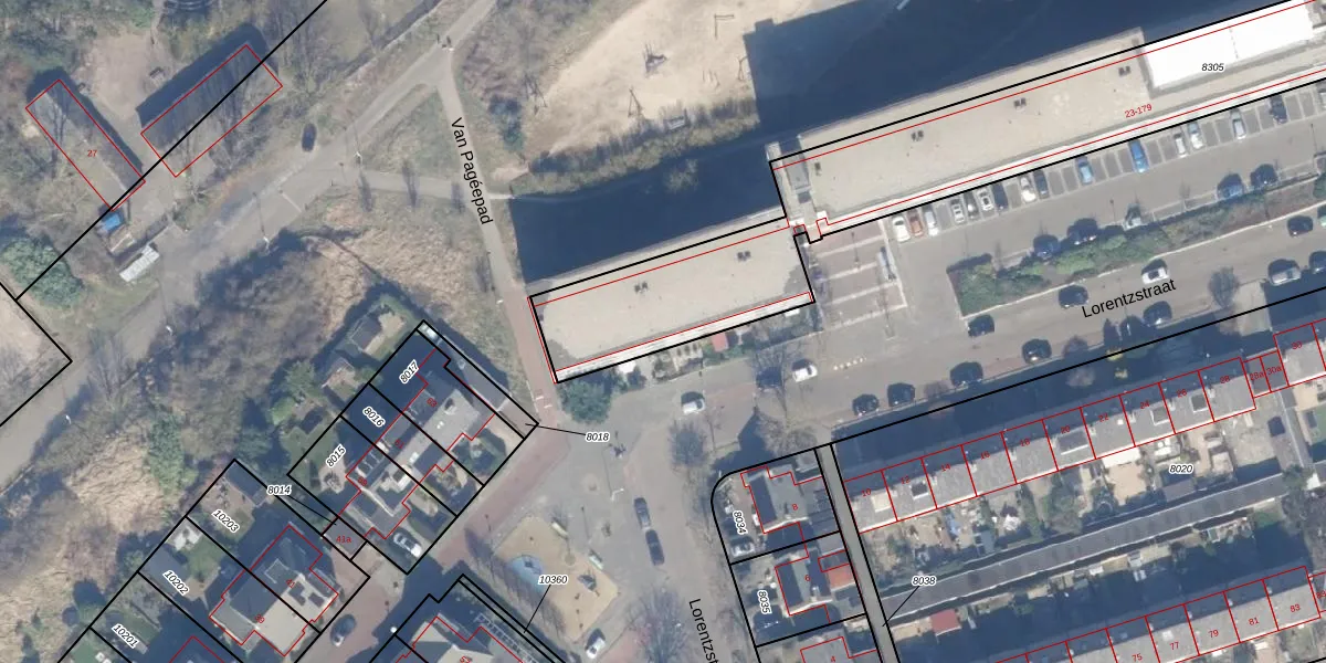 Het perceel waarop Lorentzstraat 45 staat heeft een oppervlakte van 2550 m². Dit is een zeer groot perceel. De perceeloppervlakte wordt geregistreerd door het Kadaster. Gedetailleerde informatie over de maten van dit perceel kunt u vinden in het rapport Kadastrale kaart met maatvoering van Lorentzstraat 45.