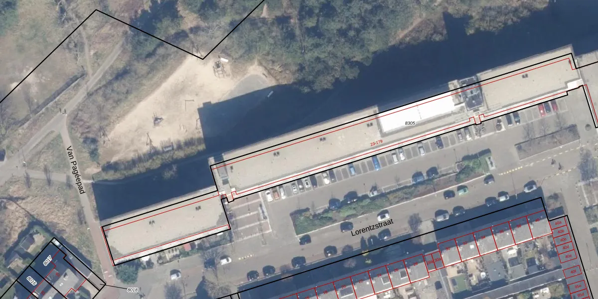 Het perceel waarop Lorentzstraat 99 staat heeft een oppervlakte van 2550 m². Dit is een zeer groot perceel. De perceeloppervlakte wordt geregistreerd door het Kadaster. Gedetailleerde informatie over de maten van dit perceel kunt u vinden in het rapport Kadastrale kaart met maatvoering van Lorentzstraat 99.