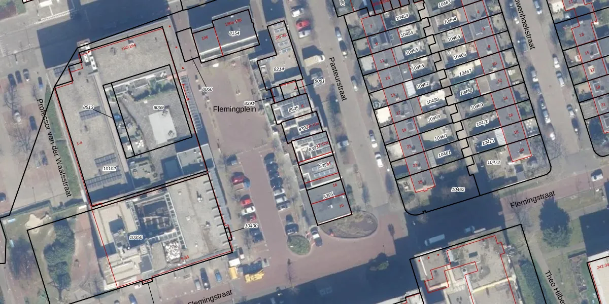 Het perceel waarop Pasteurstraat 12 staat heeft een oppervlakte van 98 m². Dit is een klein perceel. De perceeloppervlakte wordt geregistreerd door het Kadaster. Gedetailleerde informatie over de maten van dit perceel kunt u vinden in het rapport Kadastrale kaart met maatvoering van Pasteurstraat 12.