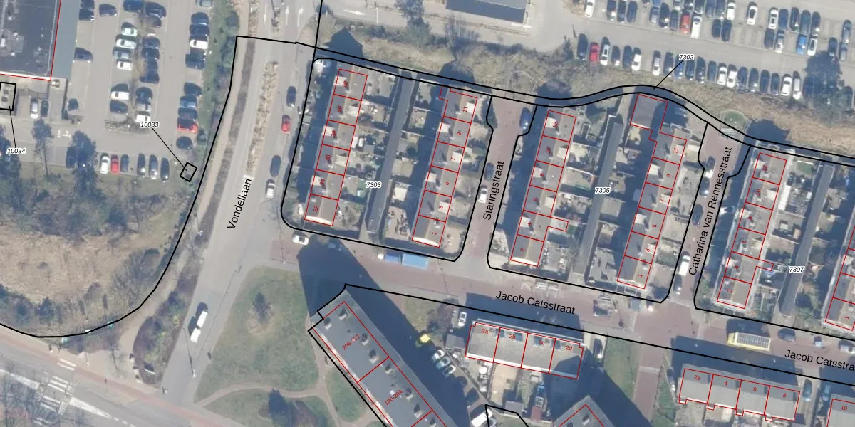 Staringstraat 3 is gelegen op kadastraal perceel ZVT00B7303. Deze kadastrale aanduiding is uniek en wordt gebruikt door het Kadaster om eigendomsrechten en andere zakelijke rechten vast te leggen. Het perceel maakt onderdeel uit van de kadastrale gemeente Zandvoort.