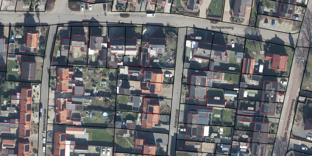 Het perceel waarop Asterstraat 2 staat heeft een oppervlakte van 338 m². Dit is een groot perceel. De perceeloppervlakte wordt geregistreerd door het Kadaster. Gedetailleerde informatie over de maten van dit perceel kunt u vinden in het rapport Kadastrale kaart met maatvoering van Asterstraat 2.