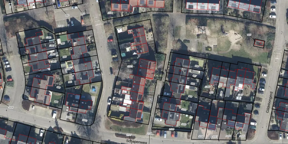 Het perceel waarop Gildebongerd 14 staat heeft een oppervlakte van 1930 m². Dit is een zeer groot perceel. De perceeloppervlakte wordt geregistreerd door het Kadaster. Gedetailleerde informatie over de maten van dit perceel kunt u vinden in het rapport Kadastrale kaart met maatvoering van Gildebongerd 14.