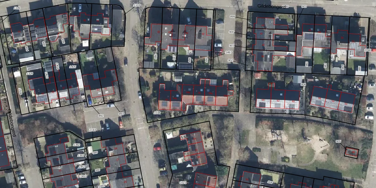 Het perceel waarop Gildebongerd 34-b staat heeft een oppervlakte van 1250 m². Dit is een zeer groot perceel. De perceeloppervlakte wordt geregistreerd door het Kadaster. Gedetailleerde informatie over de maten van dit perceel kunt u vinden in het rapport Kadastrale kaart met maatvoering van Gildebongerd 34-b.