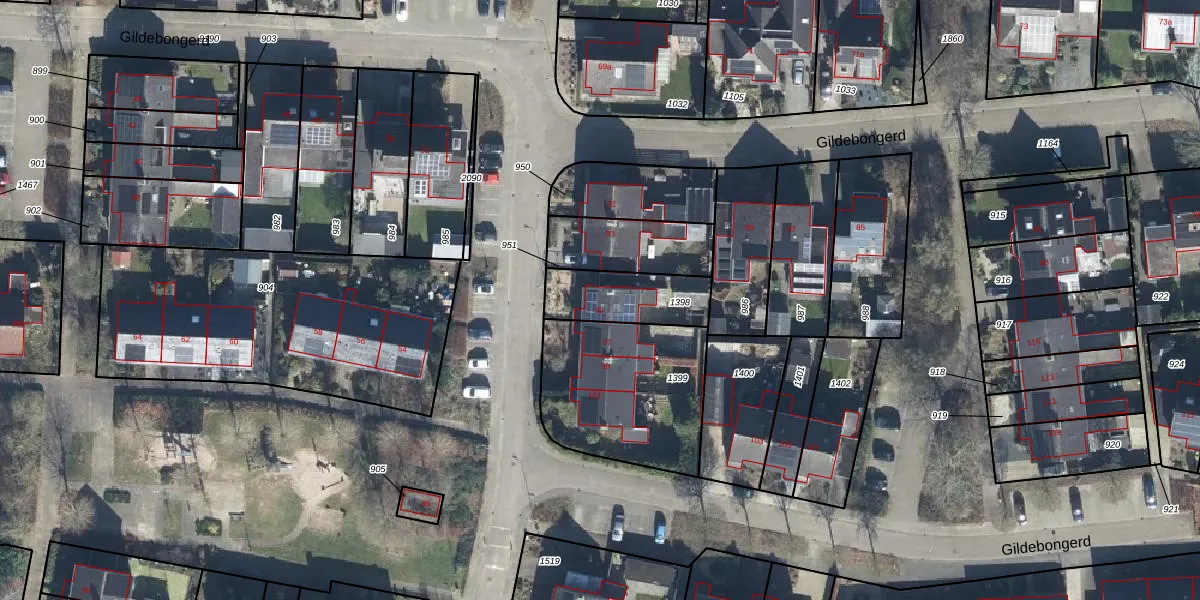 Het perceel waarop Gildebongerd 95 staat heeft een oppervlakte van 227 m². Dit is een middelgroot perceel. De perceeloppervlakte wordt geregistreerd door het Kadaster. Gedetailleerde informatie over de maten van dit perceel kunt u vinden in het rapport Kadastrale kaart met maatvoering van Gildebongerd 95.