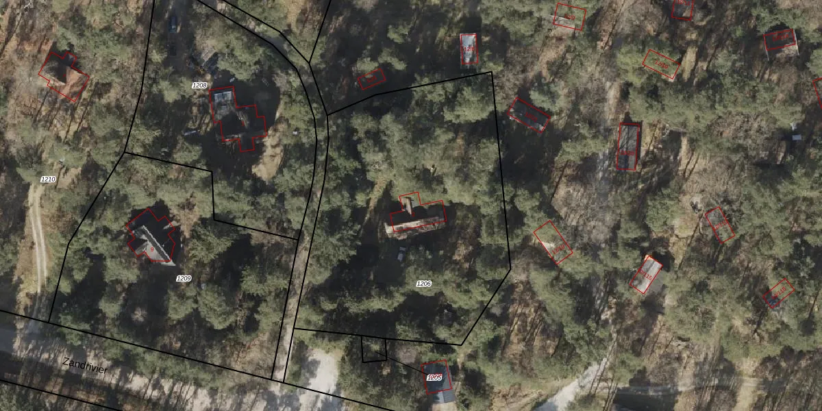 Het perceel waarop het adres ligt is VRI00-W-1206. De afkorting 'VRI00' staat voor kadastrale gemeente Vries. De gemiddelde perceelgrootte in Vries is 8865,79 m². Dit perceel is kleiner: de perceeloppervlakte bedraagt 2680 m². De grootste perceeloppervlakte in de kadastrale gemeente is 53,3 ha. De kleinste oppervlakte bedraagt 1 m². Dit is het enige adres dat aanwezig is op het perceel. In de Basisregistratie Kadaster (BRK) werden de grenzen van het perceel geregistreerd op 05-12-2000.