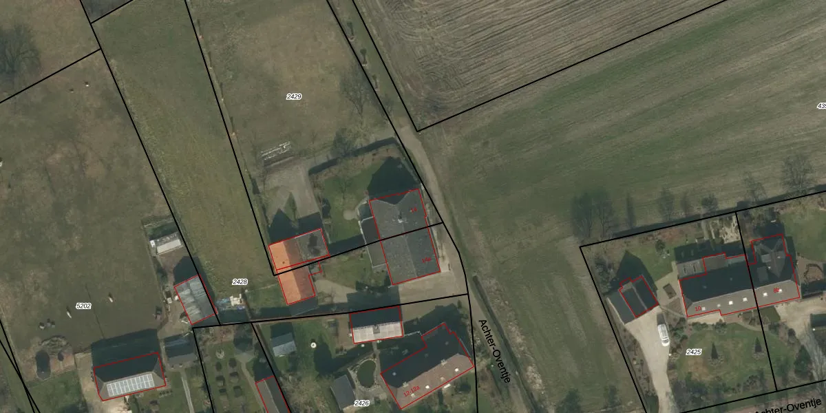 Het perceel waarop Achter-Oventje 14 staat heeft een oppervlakte van 2885 m². Dit is een zeer groot perceel. De perceeloppervlakte wordt geregistreerd door het Kadaster. Gedetailleerde informatie over de maten van dit perceel kunt u vinden in het rapport Kadastrale kaart met maatvoering van Achter-Oventje 14.