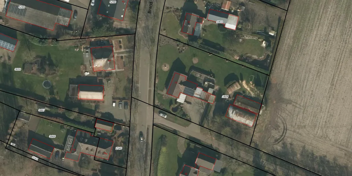 Het perceel waarop Brand 23 staat heeft een oppervlakte van 2415 m². Dit is een zeer groot perceel. De perceeloppervlakte wordt geregistreerd door het Kadaster. Gedetailleerde informatie over de maten van dit perceel kunt u vinden in het rapport Kadastrale kaart met maatvoering van Brand 23.