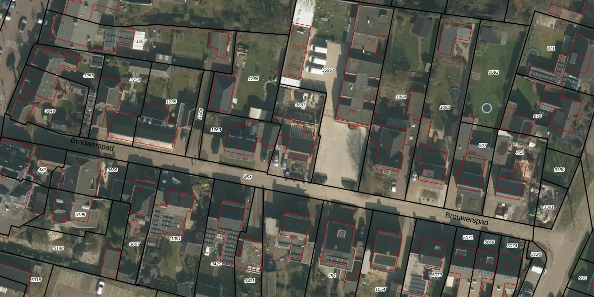 Het perceel waarop Brouwerspad 11 staat heeft een oppervlakte van 469 m². Dit is een groot perceel. De perceeloppervlakte wordt geregistreerd door het Kadaster. Gedetailleerde informatie over de maten van dit perceel kunt u vinden in het rapport Kadastrale kaart met maatvoering van Brouwerspad 11.