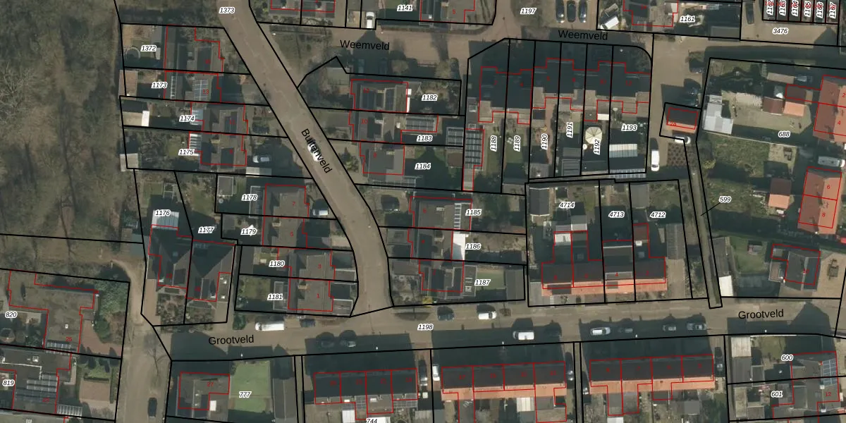 Het perceel waarop Buitenveld 6 staat heeft een oppervlakte van 354 m². Dit is een groot perceel. De perceeloppervlakte wordt geregistreerd door het Kadaster. Gedetailleerde informatie over de maten van dit perceel kunt u vinden in het rapport Kadastrale kaart met maatvoering van Buitenveld 6.