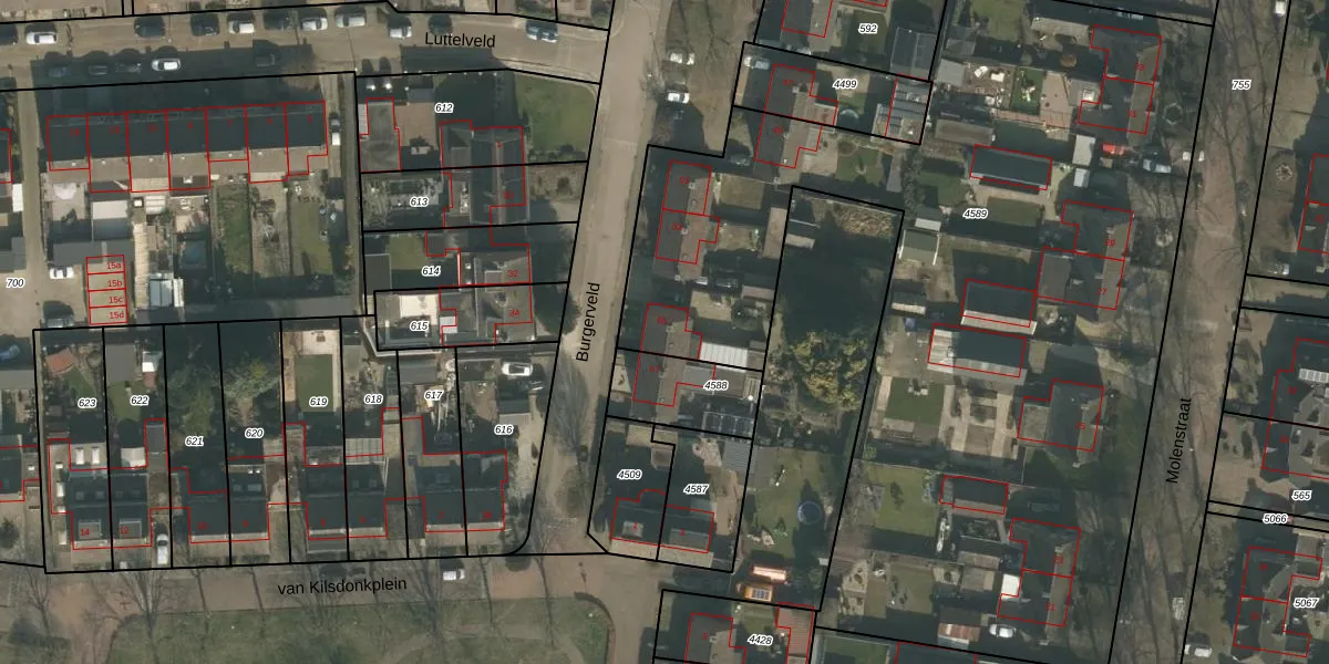 Het perceel waarop Burgerveld 55 staat heeft een oppervlakte van 5120 m². Dit is een zeer groot perceel. De perceeloppervlakte wordt geregistreerd door het Kadaster. Gedetailleerde informatie over de maten van dit perceel kunt u vinden in het rapport Kadastrale kaart met maatvoering van Burgerveld 55.
