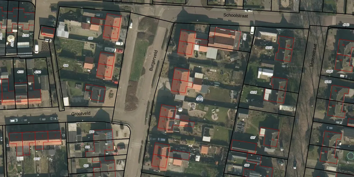 Het perceel waarop Burgerveld 7 staat heeft een oppervlakte van 3820 m². Dit is een zeer groot perceel. De perceeloppervlakte wordt geregistreerd door het Kadaster. Gedetailleerde informatie over de maten van dit perceel kunt u vinden in het rapport Kadastrale kaart met maatvoering van Burgerveld 7.