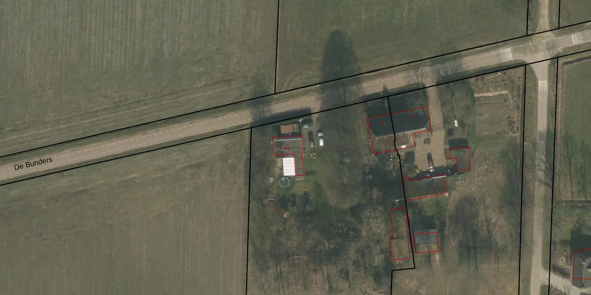 Het perceel waarop De Bunders 6-m staat heeft een oppervlakte van 1,0 ha. Dit is een zeer groot perceel. De perceeloppervlakte wordt geregistreerd door het Kadaster. Gedetailleerde informatie over de maten van dit perceel kunt u vinden in het rapport Kadastrale kaart met maatvoering van De Bunders 6-m.