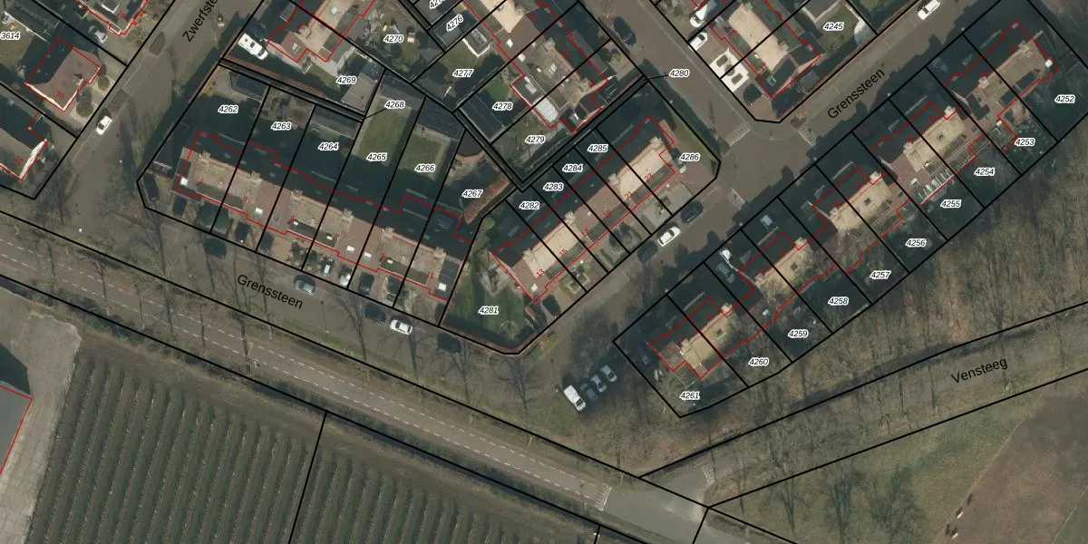 Het perceel waarop Grenssteen 13 staat heeft een oppervlakte van 430 m². Dit is een groot perceel. De perceeloppervlakte wordt geregistreerd door het Kadaster. Gedetailleerde informatie over de maten van dit perceel kunt u vinden in het rapport Kadastrale kaart met maatvoering van Grenssteen 13.