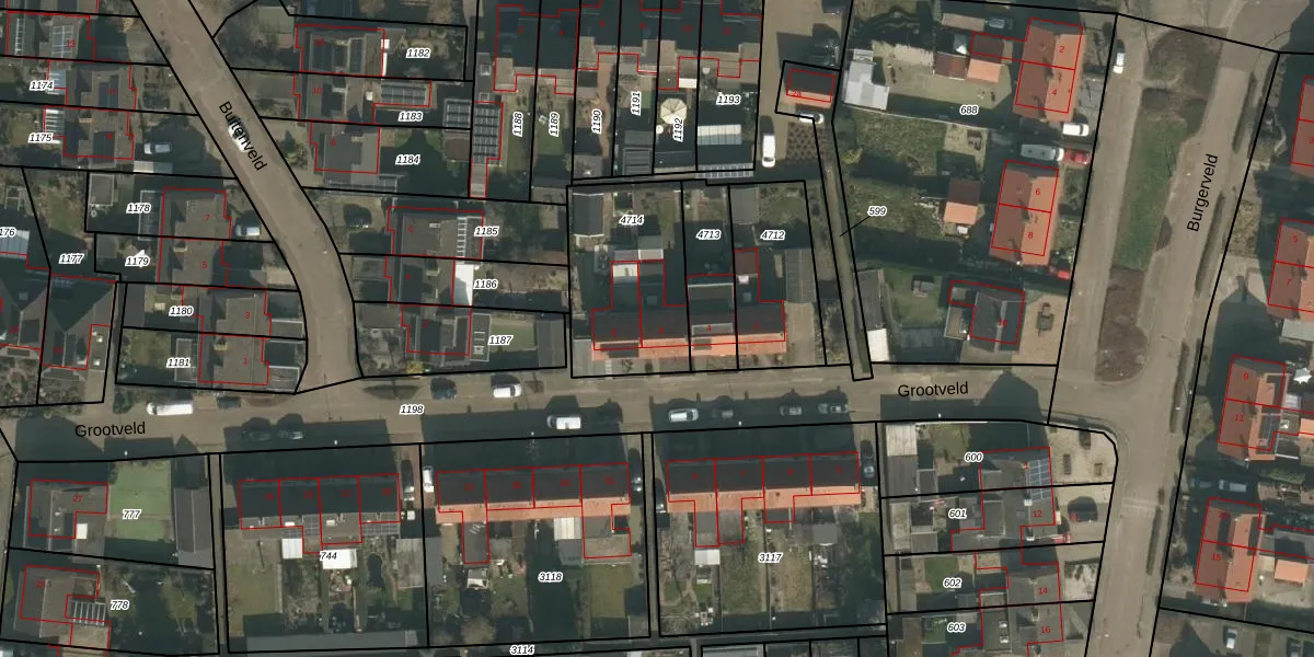 Het perceel waarop Grootveld 6 staat heeft een oppervlakte van 520 m². Dit is een groot perceel. De perceeloppervlakte wordt geregistreerd door het Kadaster. Gedetailleerde informatie over de maten van dit perceel kunt u vinden in het rapport Kadastrale kaart met maatvoering van Grootveld 6.