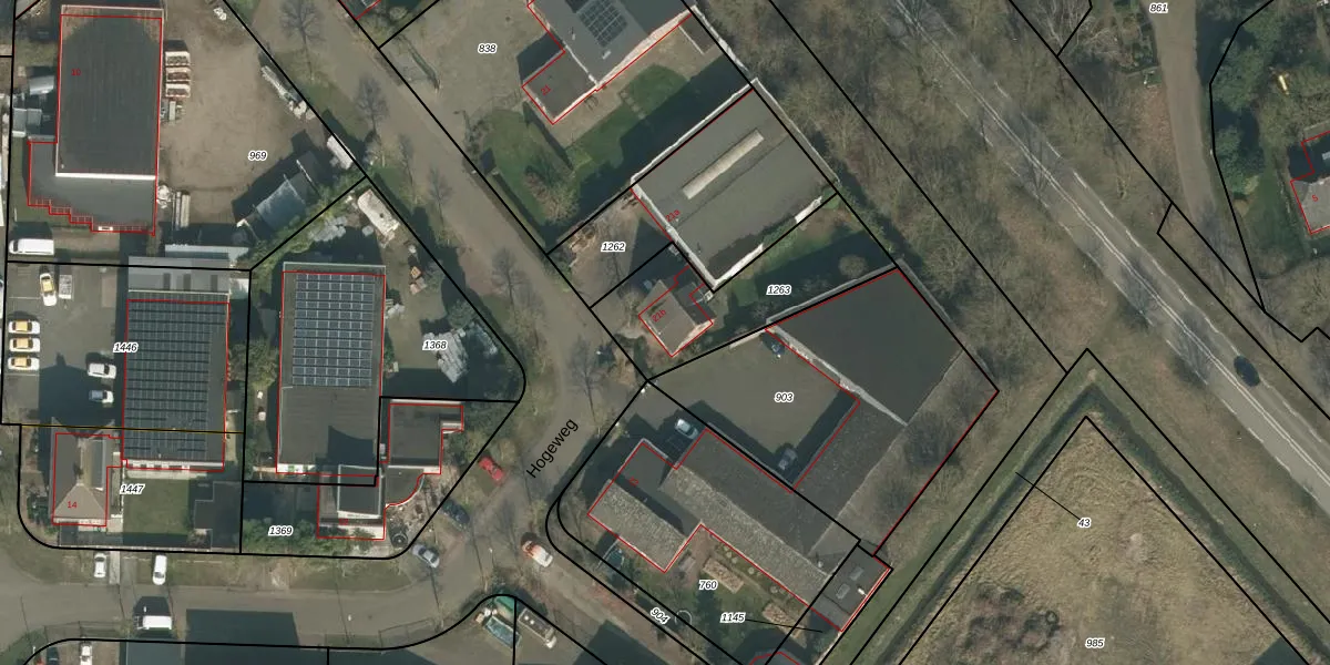Het perceel waarop Hogeweg 21-b staat heeft een oppervlakte van 528 m². Dit is een groot perceel. De perceeloppervlakte wordt geregistreerd door het Kadaster. Gedetailleerde informatie over de maten van dit perceel kunt u vinden in het rapport Kadastrale kaart met maatvoering van Hogeweg 21-b.