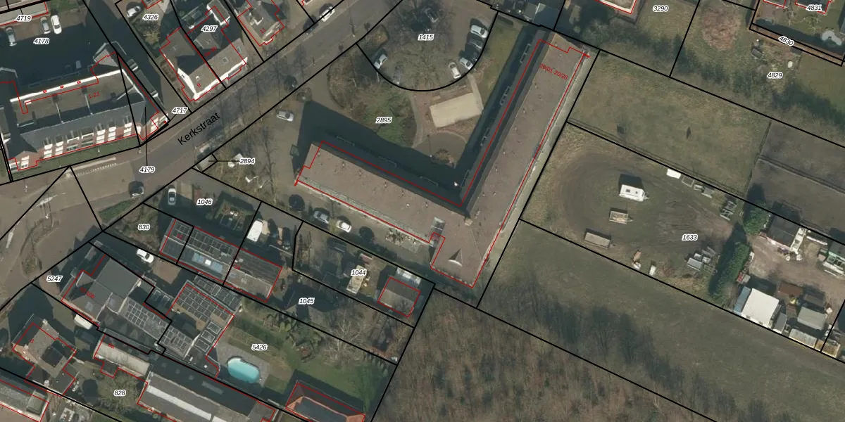 Het perceel waarop Kerkstraat 20-20 staat heeft een oppervlakte van 3258 m². Dit is een zeer groot perceel. De perceeloppervlakte wordt geregistreerd door het Kadaster. Gedetailleerde informatie over de maten van dit perceel kunt u vinden in het rapport Kadastrale kaart met maatvoering van Kerkstraat 20-20.