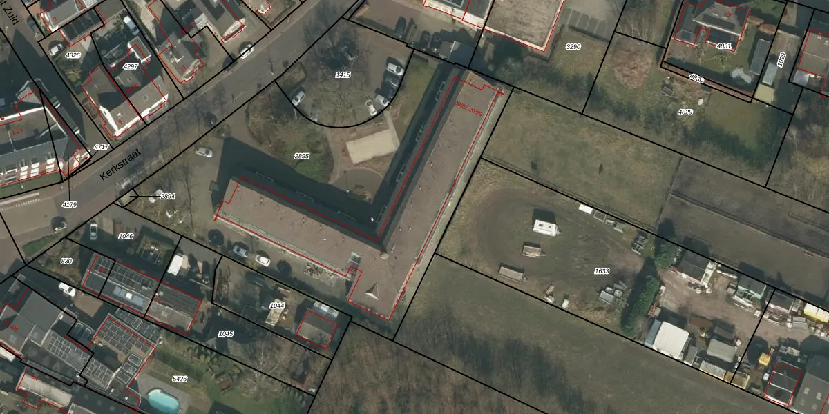 Het perceel waarop Kerkstraat 20-23 staat heeft een oppervlakte van 3258 m². Dit is een zeer groot perceel. De perceeloppervlakte wordt geregistreerd door het Kadaster. Gedetailleerde informatie over de maten van dit perceel kunt u vinden in het rapport Kadastrale kaart met maatvoering van Kerkstraat 20-23.