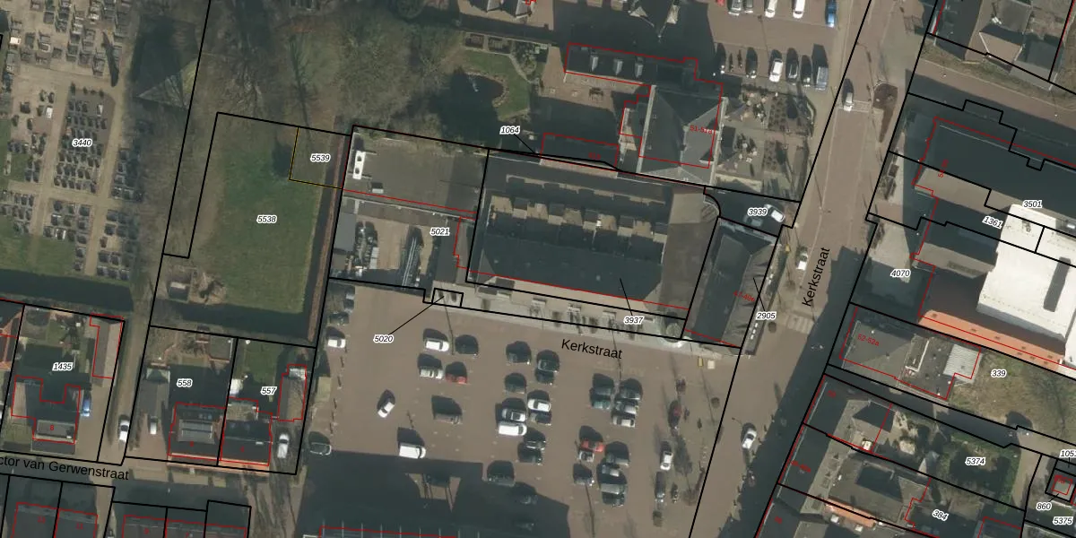 Het perceel waarop Kerkstraat 49-d staat heeft een oppervlakte van 1078 m². Dit is een zeer groot perceel. De perceeloppervlakte wordt geregistreerd door het Kadaster. Gedetailleerde informatie over de maten van dit perceel kunt u vinden in het rapport Kadastrale kaart met maatvoering van Kerkstraat 49-d.