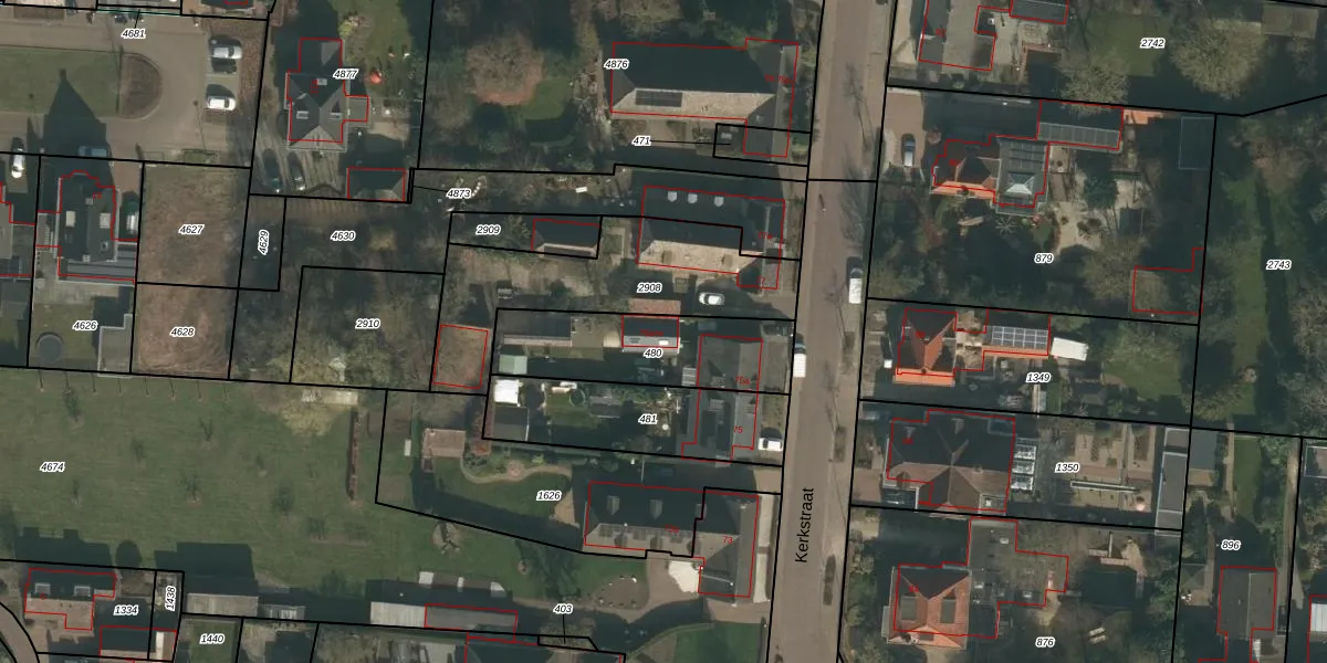 Het perceel waarop Kerkstraat 75-a-m staat heeft een oppervlakte van 480 m². Dit is een groot perceel. De perceeloppervlakte wordt geregistreerd door het Kadaster. Gedetailleerde informatie over de maten van dit perceel kunt u vinden in het rapport Kadastrale kaart met maatvoering van Kerkstraat 75-a-m.