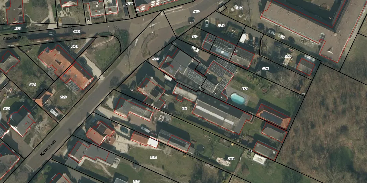Het perceel waarop Kerkstraat 8-a staat heeft een oppervlakte van 1690 m². Dit is een zeer groot perceel. De perceeloppervlakte wordt geregistreerd door het Kadaster. Gedetailleerde informatie over de maten van dit perceel kunt u vinden in het rapport Kadastrale kaart met maatvoering van Kerkstraat 8-a.