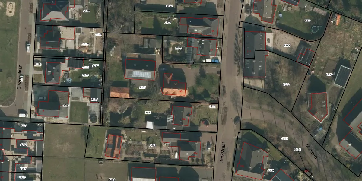 Kerkstraat 95 is gelegen op kadastraal perceel ZLD02H2680. Deze kadastrale aanduiding is uniek en wordt gebruikt door het Kadaster om eigendomsrechten en andere zakelijke rechten vast te leggen. Het perceel maakt onderdeel uit van de kadastrale gemeente Zeeland.