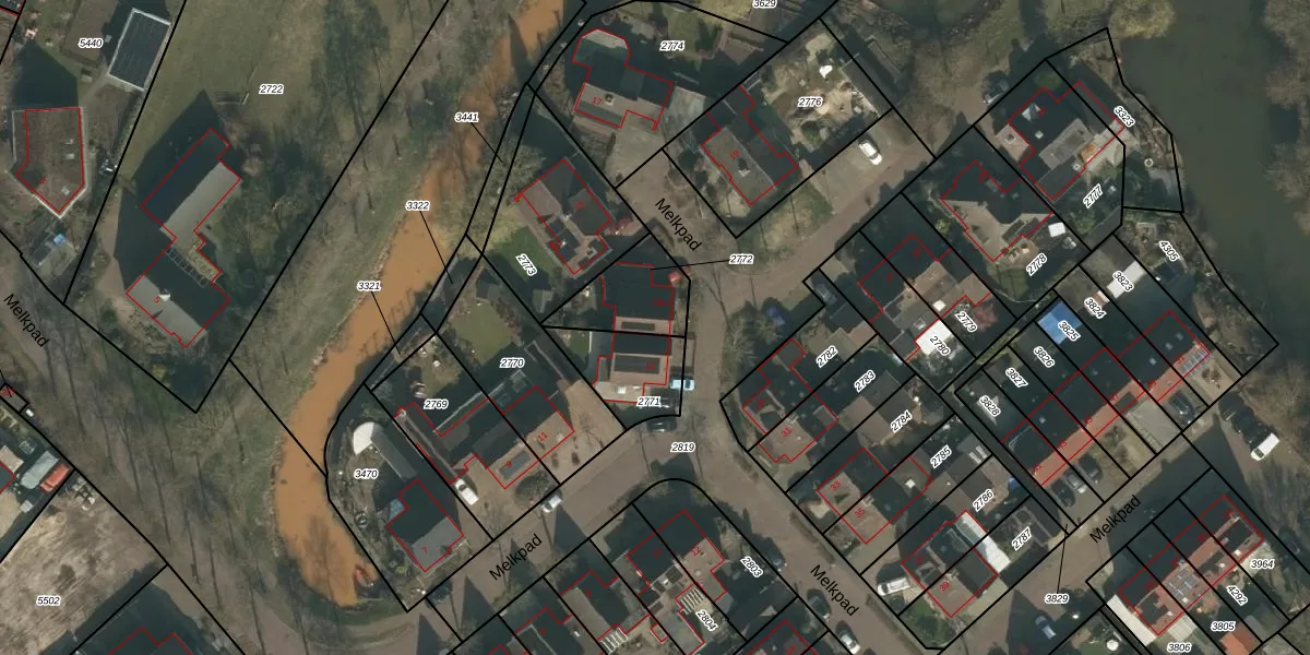 Melkpad 13-a is gelegen op kadastraal perceel ZLD02H2772. Deze kadastrale aanduiding is uniek en wordt gebruikt door het Kadaster om eigendomsrechten en andere zakelijke rechten vast te leggen. Het perceel maakt onderdeel uit van de kadastrale gemeente Zeeland.