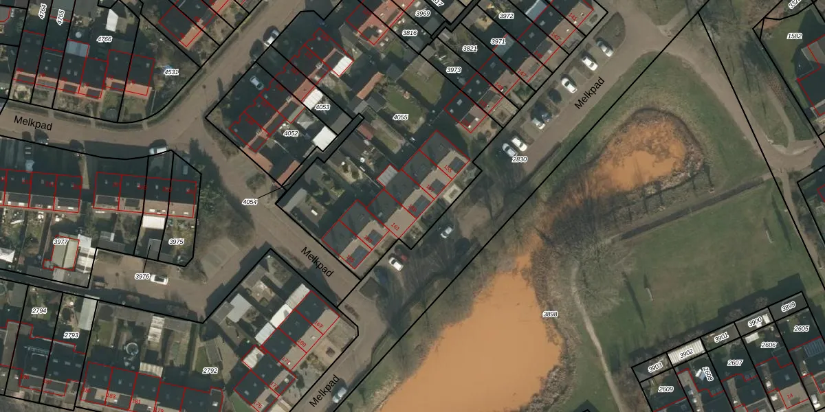 Het perceel waarop Melkpad 159 staat heeft een oppervlakte van 2031 m². Dit is een zeer groot perceel. De perceeloppervlakte wordt geregistreerd door het Kadaster. Gedetailleerde informatie over de maten van dit perceel kunt u vinden in het rapport Kadastrale kaart met maatvoering van Melkpad 159.