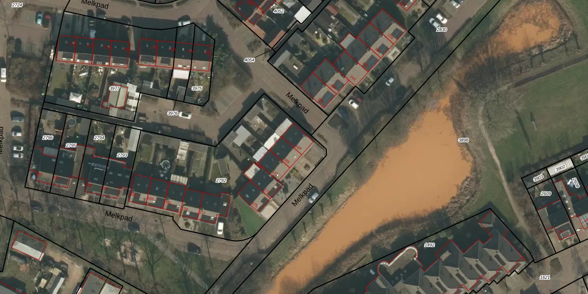 Het perceel waarop Melkpad 167 staat heeft een oppervlakte van 1971 m². Dit is een zeer groot perceel. De perceeloppervlakte wordt geregistreerd door het Kadaster. Gedetailleerde informatie over de maten van dit perceel kunt u vinden in het rapport Kadastrale kaart met maatvoering van Melkpad 167.