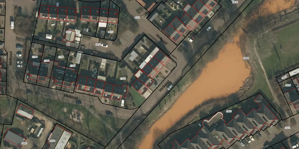 Het perceel waarop Melkpad 171 staat heeft een oppervlakte van 1971 m². Dit is een zeer groot perceel. De perceeloppervlakte wordt geregistreerd door het Kadaster. Gedetailleerde informatie over de maten van dit perceel kunt u vinden in het rapport Kadastrale kaart met maatvoering van Melkpad 171.