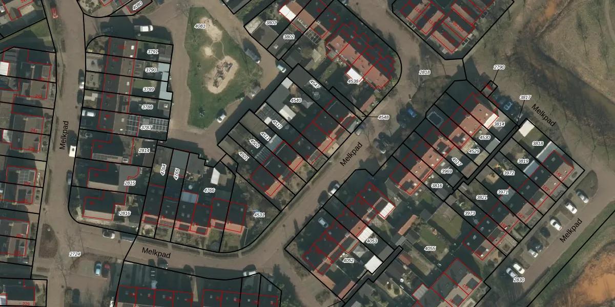 Gebruik de zoekbalk of klik op een perceel voor informatie over de adressen binnen dit perceel.