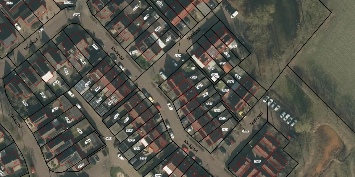 Het perceel waarop Melkpad 63 staat heeft een oppervlakte van 301 m². Dit is een groot perceel. De perceeloppervlakte wordt geregistreerd door het Kadaster. Gedetailleerde informatie over de maten van dit perceel kunt u vinden in het rapport Kadastrale kaart met maatvoering van Melkpad 63.