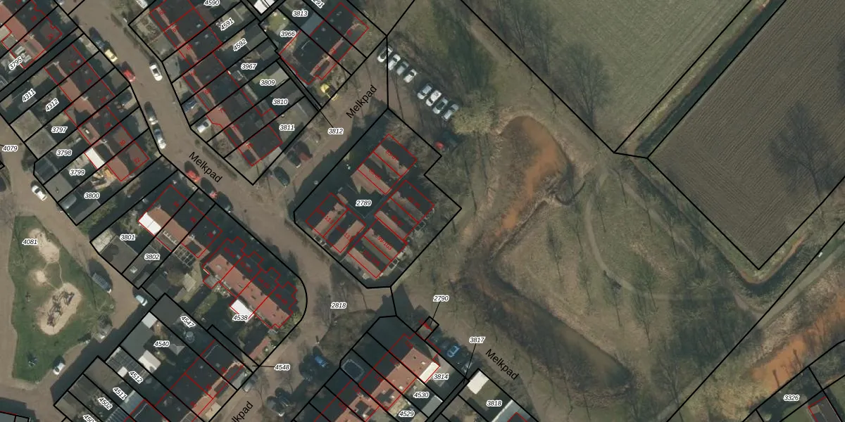Het perceel waarop Melkpad 91 staat heeft een oppervlakte van 928 m². Dit is een groot perceel. De perceeloppervlakte wordt geregistreerd door het Kadaster. Gedetailleerde informatie over de maten van dit perceel kunt u vinden in het rapport Kadastrale kaart met maatvoering van Melkpad 91.