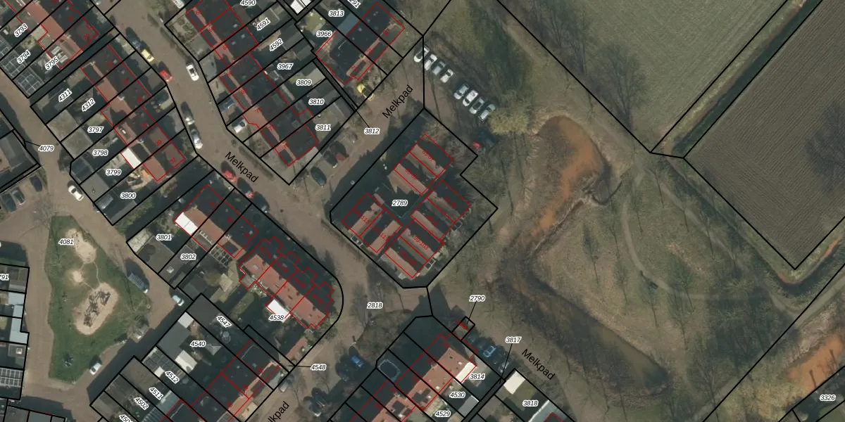 Het perceel waarop Melkpad 97 staat heeft een oppervlakte van 928 m². Dit is een groot perceel. De perceeloppervlakte wordt geregistreerd door het Kadaster. Gedetailleerde informatie over de maten van dit perceel kunt u vinden in het rapport Kadastrale kaart met maatvoering van Melkpad 97.
