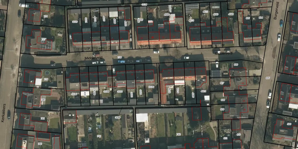 Gebruik de zoekbalk of klik op een perceel voor informatie over de adressen binnen dit perceel.
