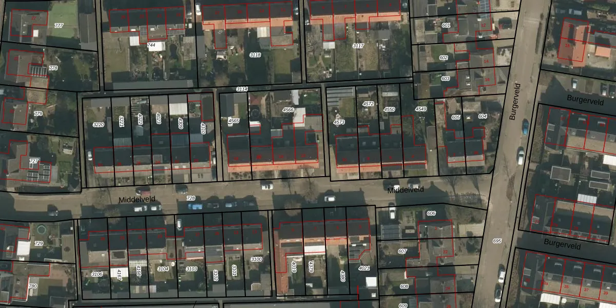 Het perceel waarop Middelveld 12 staat heeft een oppervlakte van 685 m². Dit is een groot perceel. De perceeloppervlakte wordt geregistreerd door het Kadaster. Gedetailleerde informatie over de maten van dit perceel kunt u vinden in het rapport Kadastrale kaart met maatvoering van Middelveld 12.