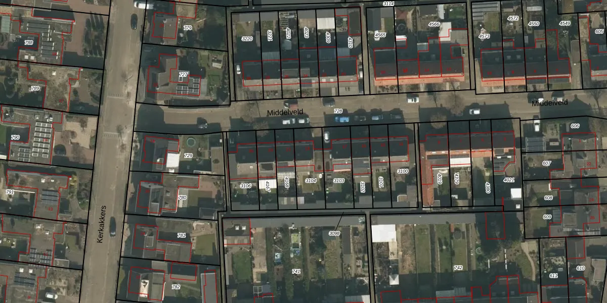 Middelveld 19 is gelegen op kadastraal perceel ZLD02H3104. Deze kadastrale aanduiding is uniek en wordt gebruikt door het Kadaster om eigendomsrechten en andere zakelijke rechten vast te leggen. Het perceel maakt onderdeel uit van de kadastrale gemeente Zeeland.
