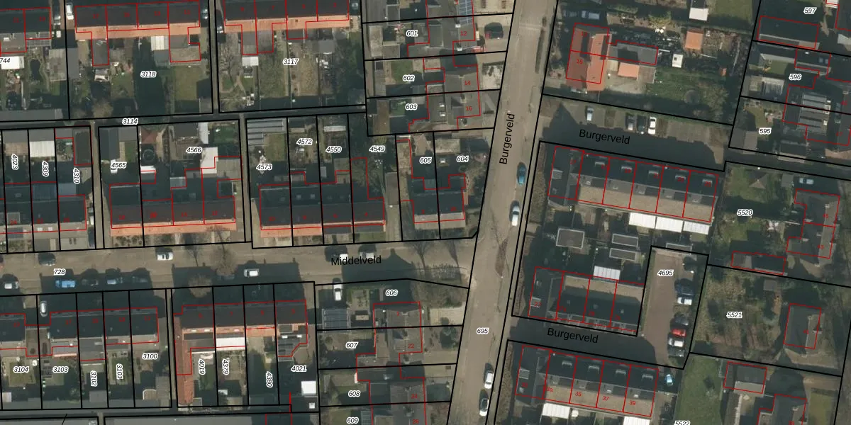 Het perceel waarop Middelveld 2 staat heeft een oppervlakte van 223 m². Dit is een middelgroot perceel. De perceeloppervlakte wordt geregistreerd door het Kadaster. Gedetailleerde informatie over de maten van dit perceel kunt u vinden in het rapport Kadastrale kaart met maatvoering van Middelveld 2.