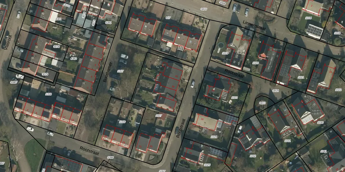 Het perceel waarop Rootstraat 29 staat heeft een oppervlakte van 1418 m². Dit is een zeer groot perceel. De perceeloppervlakte wordt geregistreerd door het Kadaster. Gedetailleerde informatie over de maten van dit perceel kunt u vinden in het rapport Kadastrale kaart met maatvoering van Rootstraat 29.