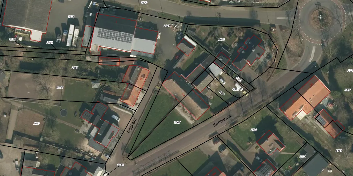 Het perceel waarop Roskam 4 staat heeft een oppervlakte van 2220 m². Dit is een zeer groot perceel. De perceeloppervlakte wordt geregistreerd door het Kadaster. Gedetailleerde informatie over de maten van dit perceel kunt u vinden in het rapport Kadastrale kaart met maatvoering van Roskam 4.