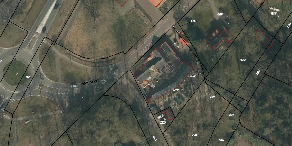 Udenseweg 33 is gelegen op kadastraal perceel ZLD02H4817. Deze kadastrale aanduiding is uniek en wordt gebruikt door het Kadaster om eigendomsrechten en andere zakelijke rechten vast te leggen. Het perceel maakt onderdeel uit van de kadastrale gemeente Zeeland.