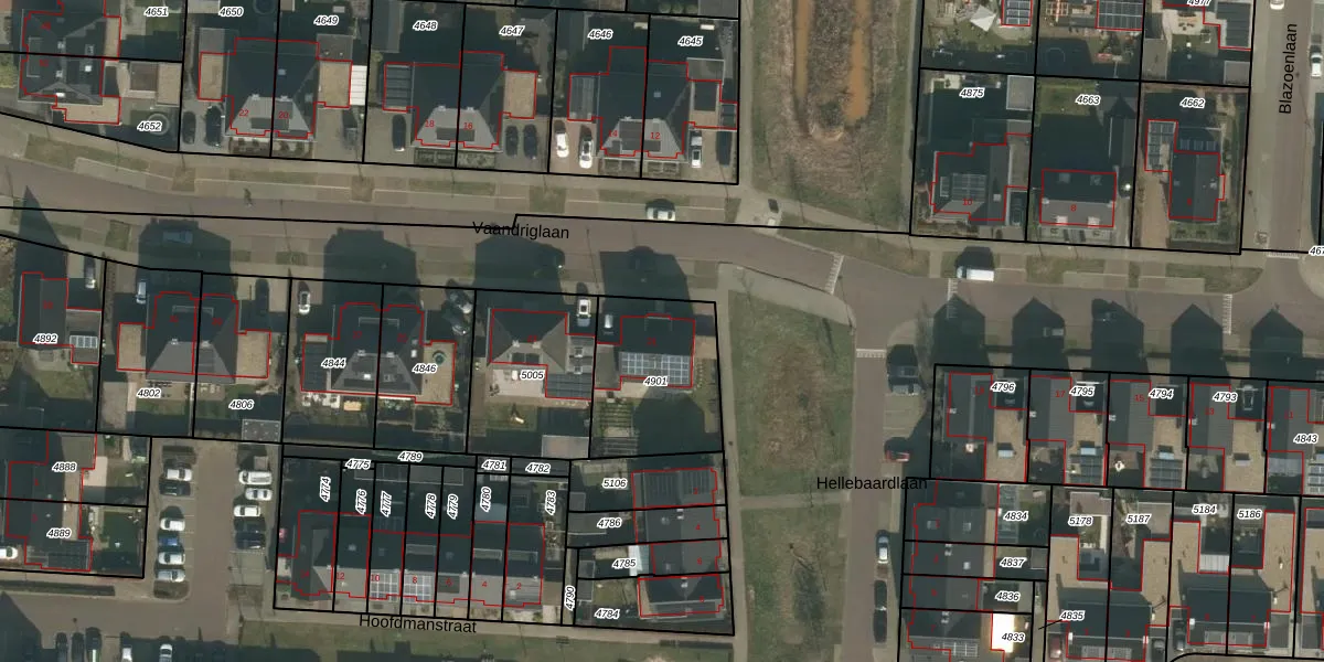 Vaandriglaan 21 is gelegen op kadastraal perceel ZLD02H4901. Deze kadastrale aanduiding is uniek en wordt gebruikt door het Kadaster om eigendomsrechten en andere zakelijke rechten vast te leggen. Het perceel maakt onderdeel uit van de kadastrale gemeente Zeeland.