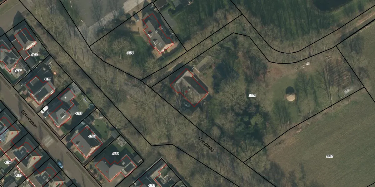 Het perceel waarop Vensteeg 13 staat heeft een oppervlakte van 4142 m². Dit is een zeer groot perceel. De perceeloppervlakte wordt geregistreerd door het Kadaster. Gedetailleerde informatie over de maten van dit perceel kunt u vinden in het rapport Kadastrale kaart met maatvoering van Vensteeg 13.