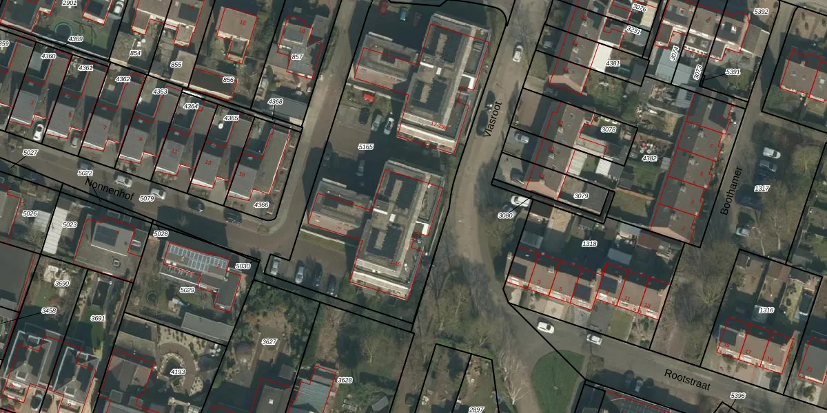 Het perceel waarop Vlasroot 11-d staat heeft een oppervlakte van 2494 m². Dit is een zeer groot perceel. De perceeloppervlakte wordt geregistreerd door het Kadaster. Gedetailleerde informatie over de maten van dit perceel kunt u vinden in het rapport Kadastrale kaart met maatvoering van Vlasroot 11-d.