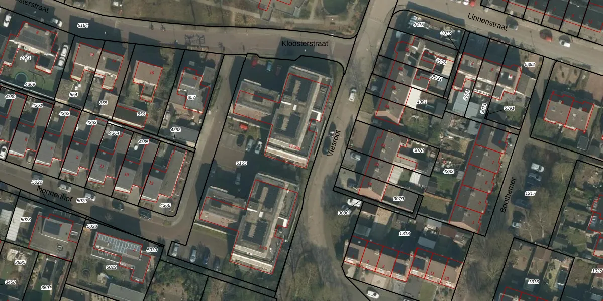 Het perceel waarop Vlasroot 17 staat heeft een oppervlakte van 2494 m². Dit is een zeer groot perceel. De perceeloppervlakte wordt geregistreerd door het Kadaster. Gedetailleerde informatie over de maten van dit perceel kunt u vinden in het rapport Kadastrale kaart met maatvoering van Vlasroot 17.