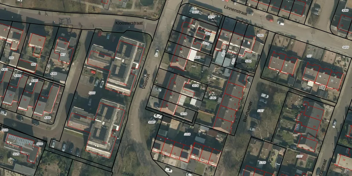 Gebruik de zoekbalk of klik op een perceel voor informatie over de adressen binnen dit perceel.