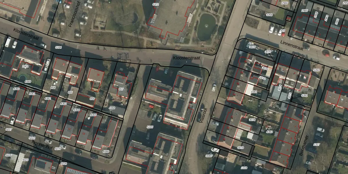 Het perceel waarop Vlasroot 27-c staat heeft een oppervlakte van 2494 m². Dit is een zeer groot perceel. De perceeloppervlakte wordt geregistreerd door het Kadaster. Gedetailleerde informatie over de maten van dit perceel kunt u vinden in het rapport Kadastrale kaart met maatvoering van Vlasroot 27-c.
