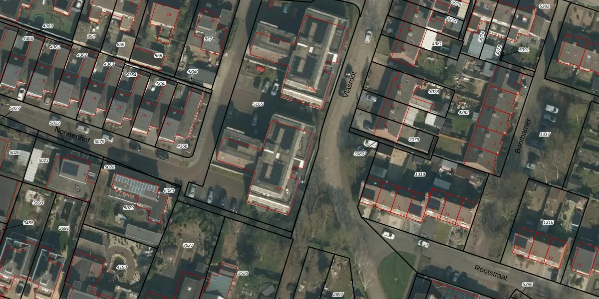 Vlasroot 9 is gelegen op kadastraal perceel ZLD02H5165. Deze kadastrale aanduiding is uniek en wordt gebruikt door het Kadaster om eigendomsrechten en andere zakelijke rechten vast te leggen. Het perceel maakt onderdeel uit van de kadastrale gemeente Zeeland.