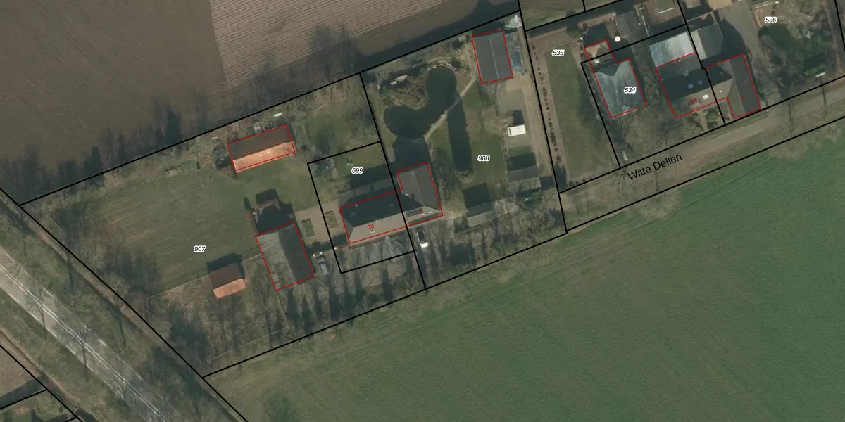 Witte Dellen 1 is gelegen op kadastraal perceel ZLD02K908. Deze kadastrale aanduiding is uniek en wordt gebruikt door het Kadaster om eigendomsrechten en andere zakelijke rechten vast te leggen. Het perceel maakt onderdeel uit van de kadastrale gemeente Zeeland.